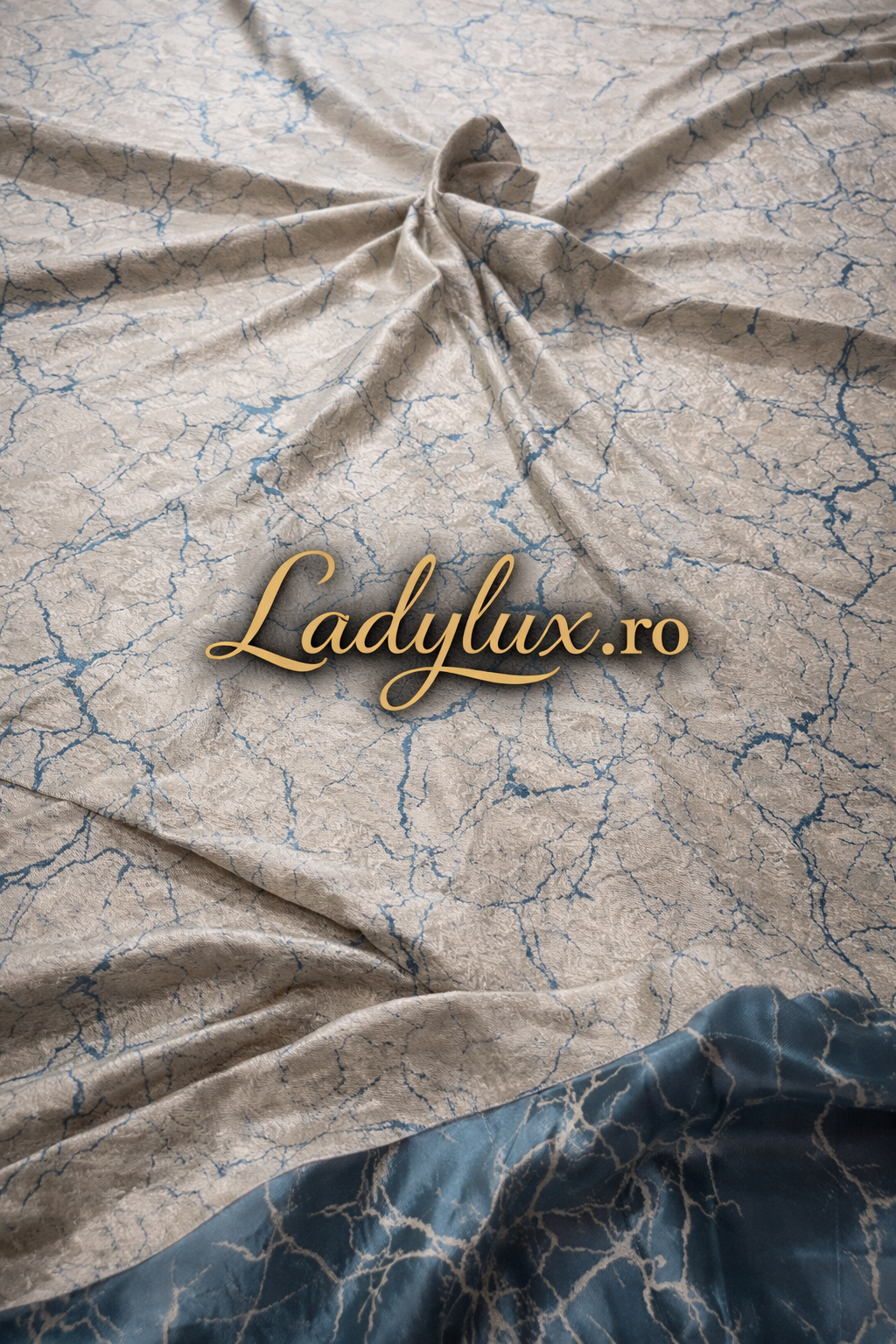 Set Draperii Model Marmo Crem-Turcoaz Cu Tiv si Rejansa 3M-2.7h