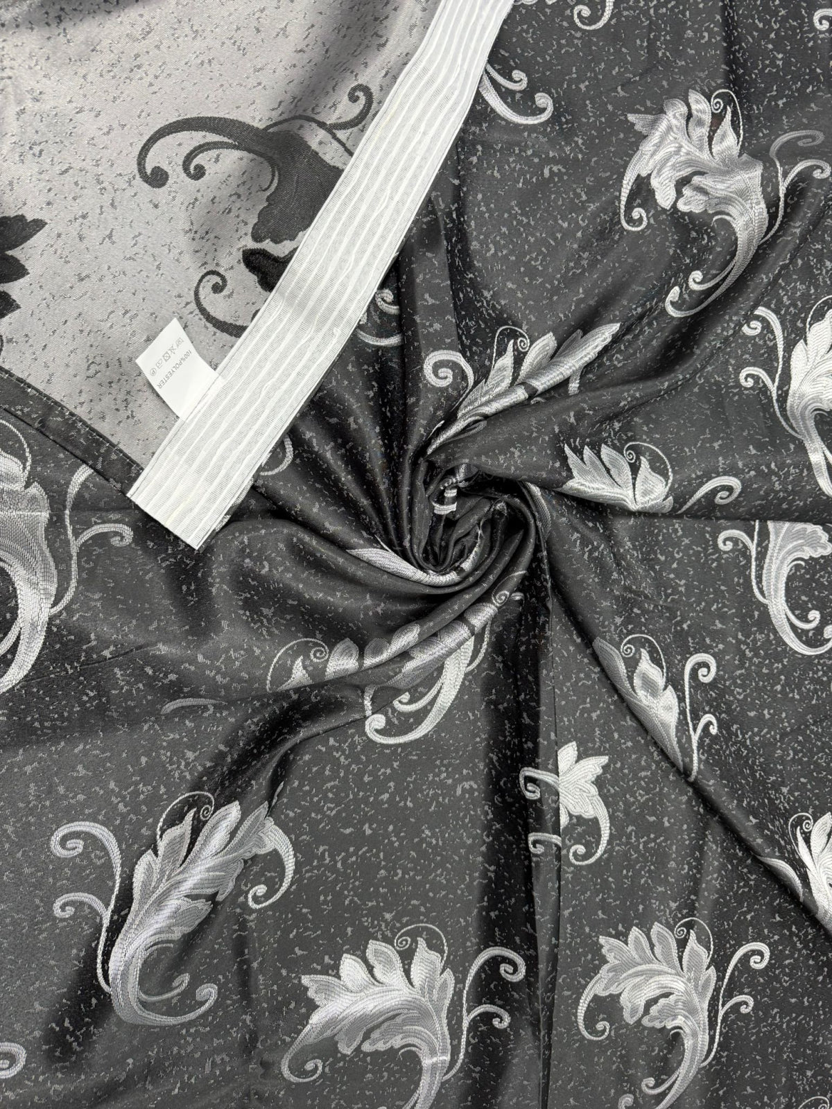 Set Draperii Negru Frunza Gata Cusute cu Tiv si Rejansă, 3M x 2.7 h Model Frunza