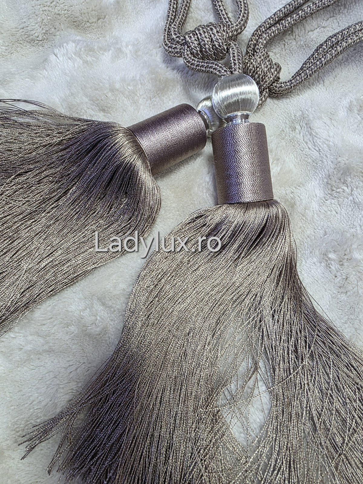 Material: șnur împletit + ciucuri decorativi cu luciu elegant