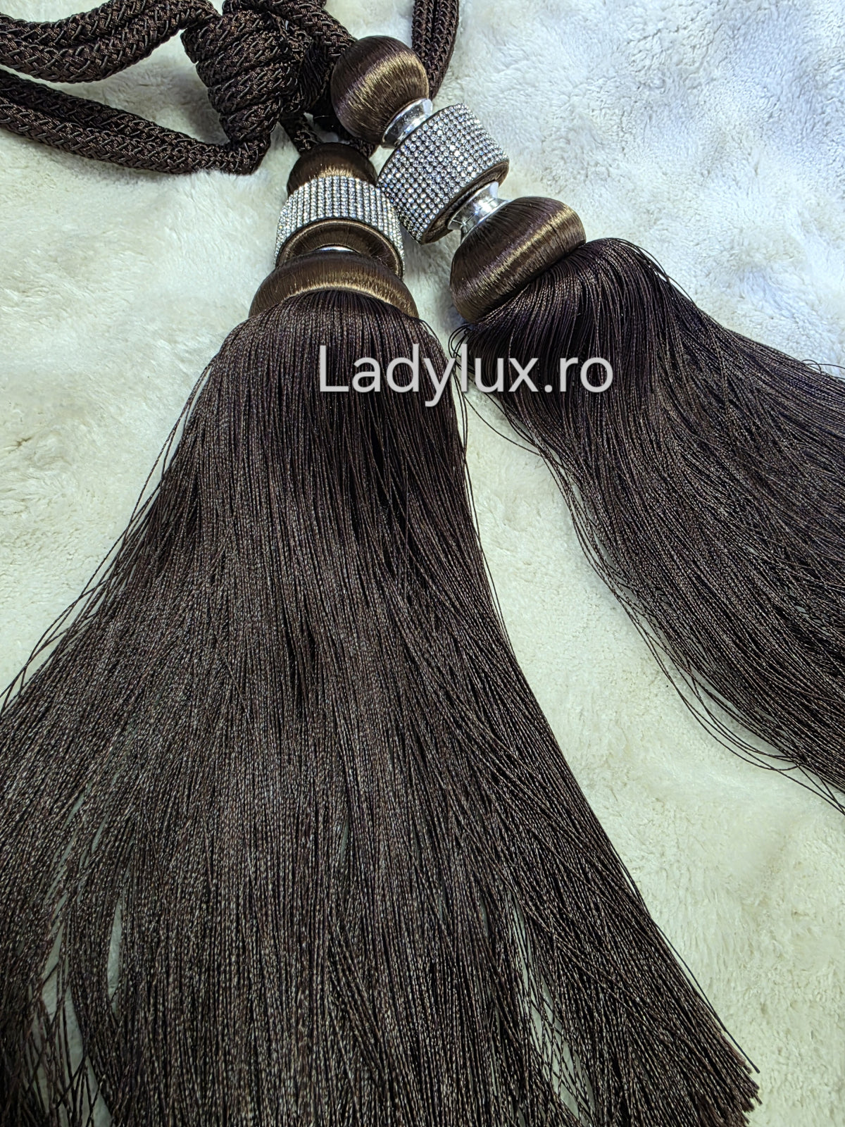 • Material: șnur împletit + ciucuri decorativi cu luciu elegant